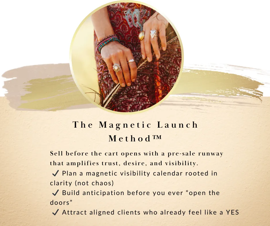 You’re offering too much brilliance—and not enough clarity. You’ve mastered your craft. But your offer? It’s still blending modalities, serving multiple avatars, and resisting definition. You’re booked… but you’re not branded. What you want: A high-integrity, high-converting signature program that says “this is what I’m known for.”